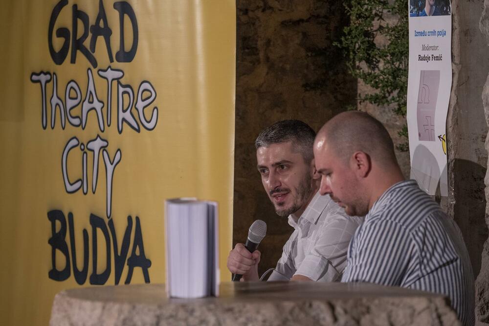 Књижевни програм овогодишњег фестивала “Град театар” настављен је 3. августа, а гост Трга пјесника био је писац Мирко Јовановић који је представио свој роман “Између црних поља” што је уједно и прва промоција овог романа објављеног 2020. године.