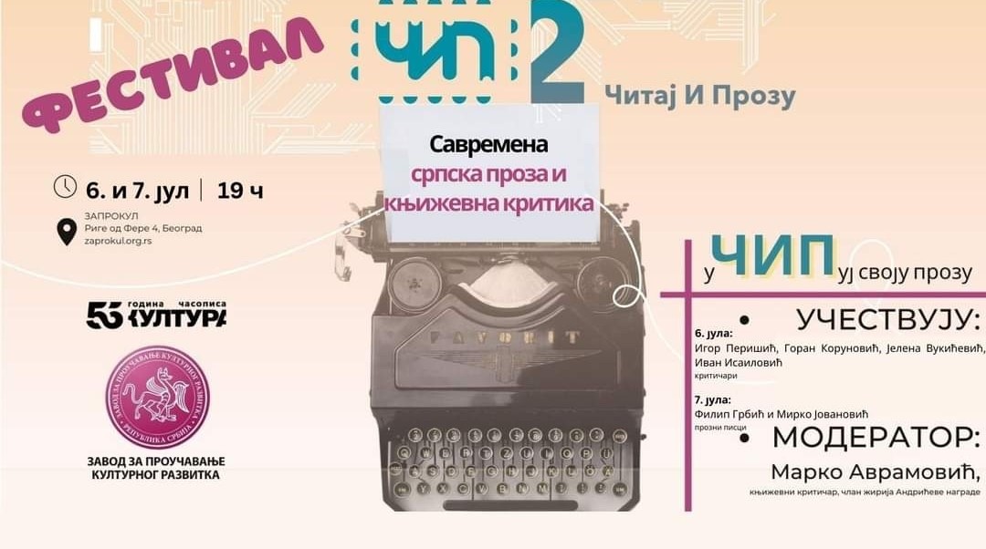 БЕОГРАД – „ЧИП фестивал – вечери Читања и Прозе” 6. и 7. јула биће одржан на летњој сцени Завода за проучавање културног развитка (Запрокул) у Београду, најавили су данас организатори.