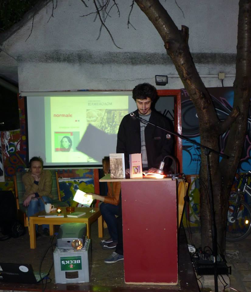 Промоција збирки поезије „Нормале” Слађане Шимрак и „Каменолом” Мирка Јовановића, кафе „Певац”, Стара Пазова, 13. 4. 2014.