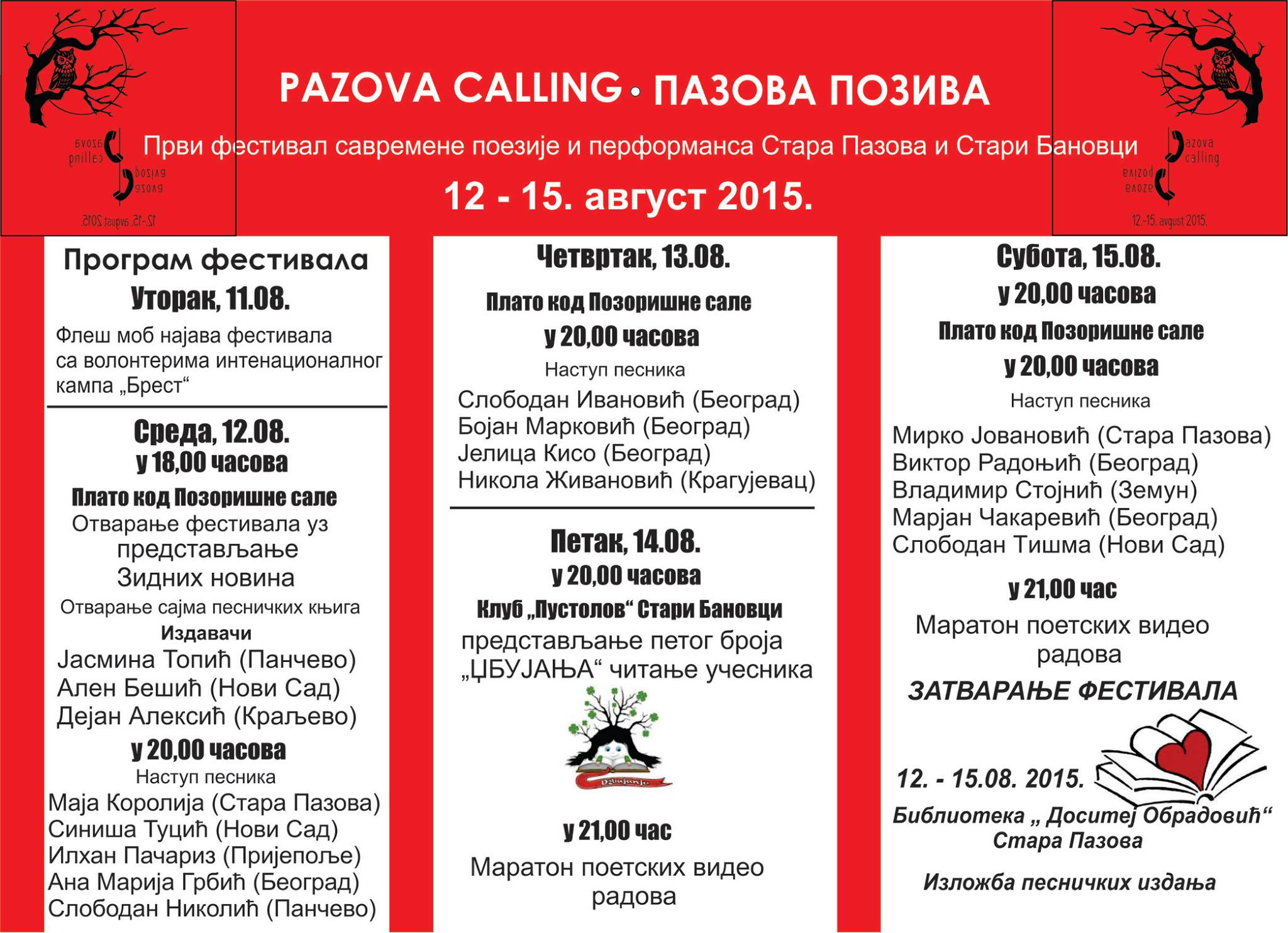 Фестивал „Pazova Calling – Пазова позива”, Стара Пазова и Стари Бановци, 12–15. 8. 2015.